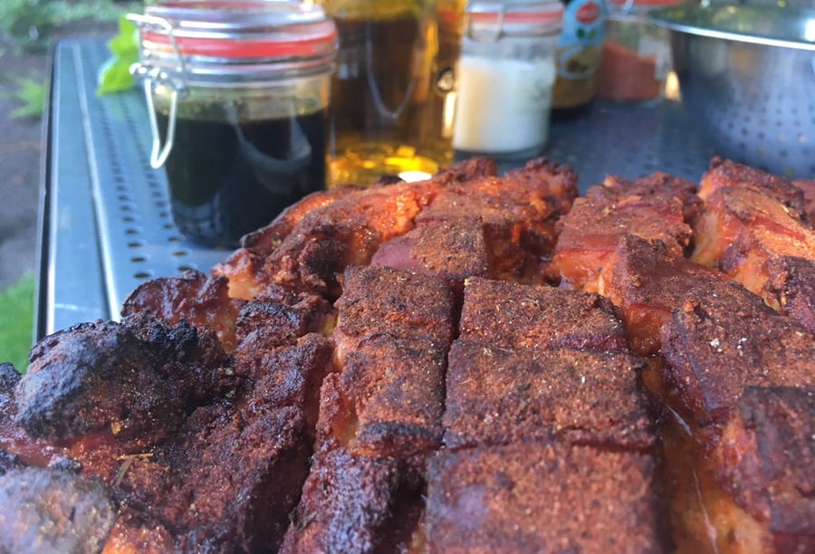 Since the pork belly needs to be treated with a homemade rub and then refrigerated for AT LEAST 2 hours, we'll start with the pork belly first before lighting up the KLAUWE.