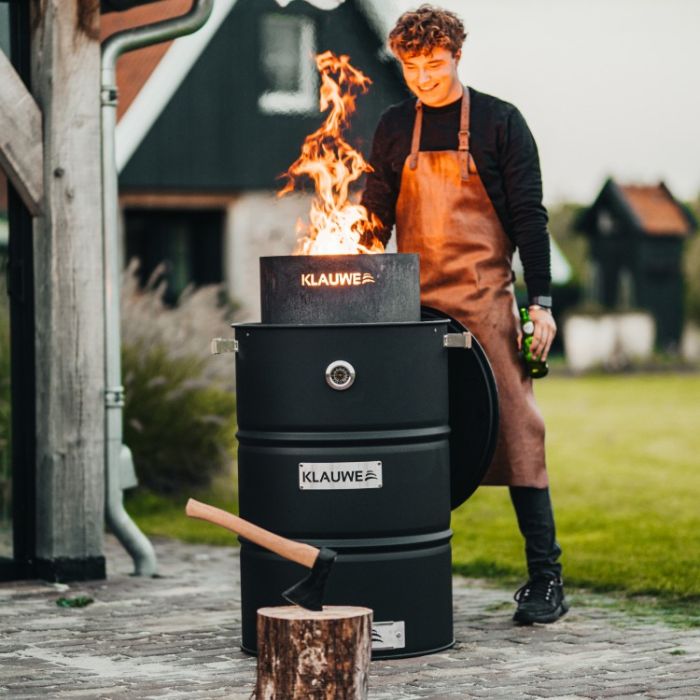 The KLAUWE Chimney is expertly designed for optimal wood burning, resulting in minimal smoke production. The fire in the KLAUWE Chimney can be regulated using the air slots at the bottom of your KLAUWE BBQ & Smoking Drum. When burning efficiently, the KLAUWE Chimney becomes an exceptional heater and atmosphere creator.